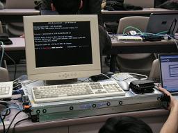 写真は、自宅からラックマウント型サーバーを持ち込んで、サーバー構築をするためにCentOSをインストールしているグループの様子です。